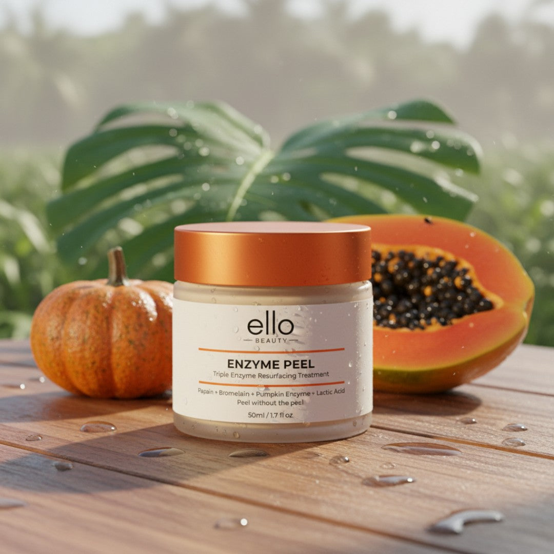 Redonnez de l'éclat à votre peau grâce à ce soin resurfaçant doux et efficace. Formulé à base de papaïne , de bromélaïne , d'enzyme de citrouille et d'acide lactique , il dissout les cellules mortes en surface pour révéler une peau plus lisse, plus lumineuse et plus uniforme, sans irritation ni gommage agressif. Dès la première utilisation, la peau est douce, affinée et éclatante.
